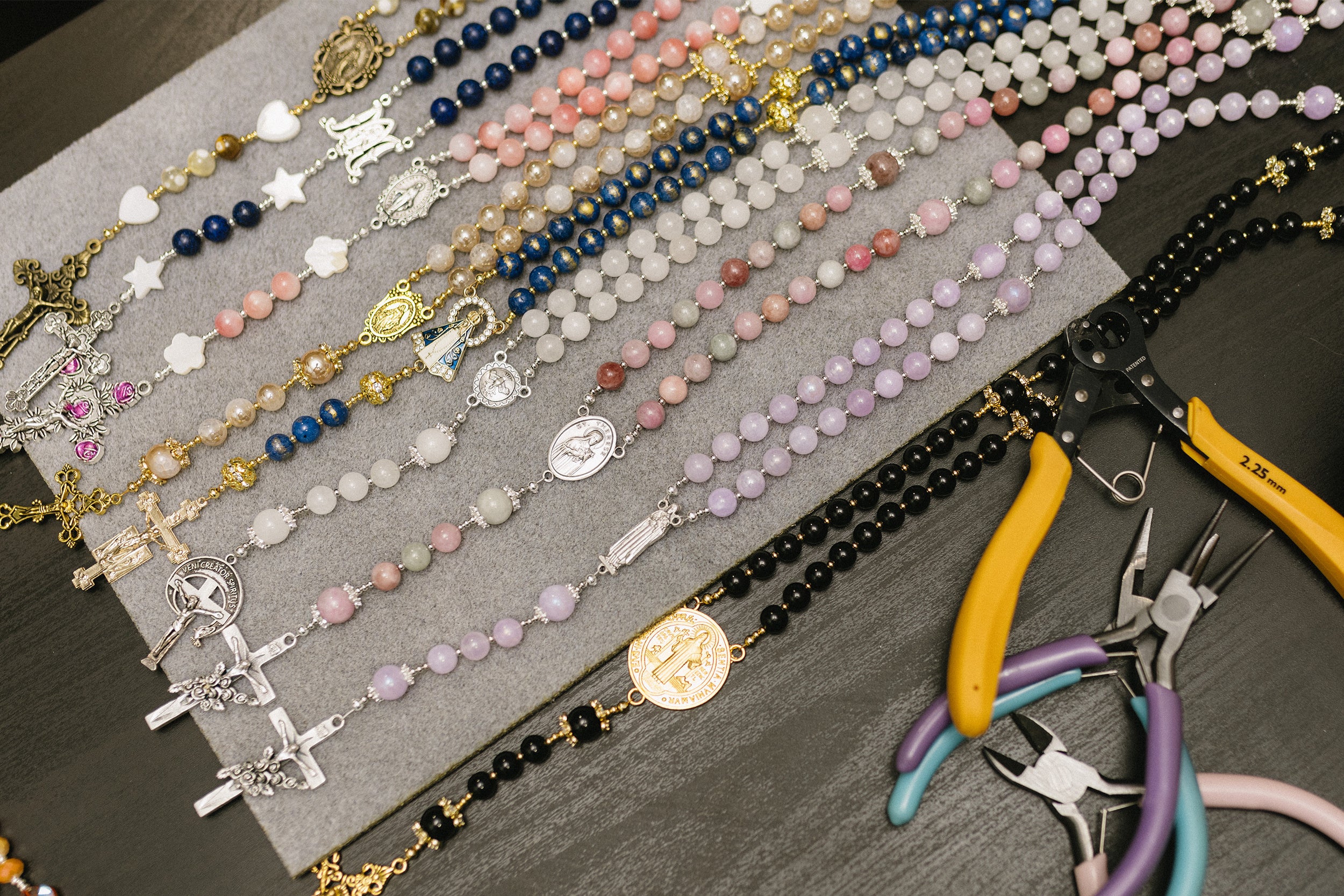 Handcrafted patron saint rosaries featuring meaningful medals and beads. Perfect for prayer,...